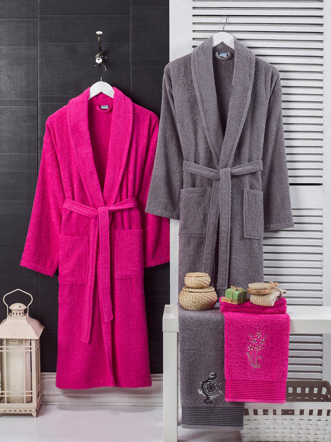 Antrasit-Bej - Doğa 2'li Bornoz Aile Seti