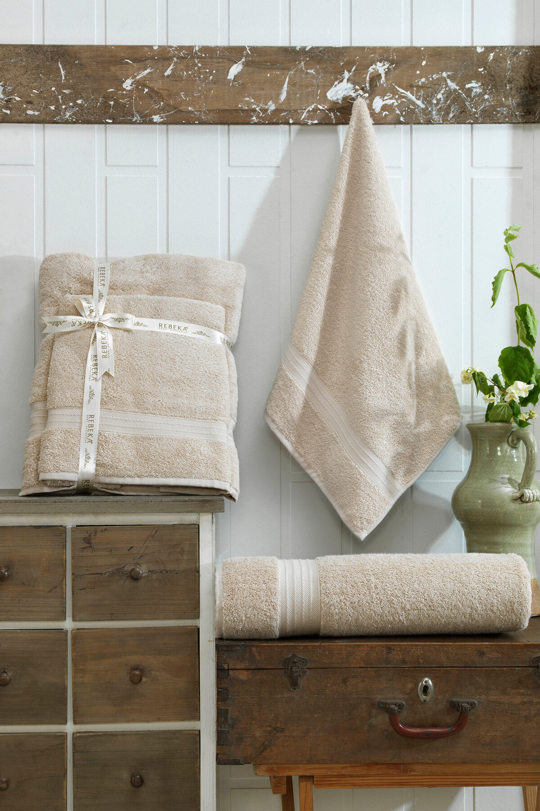 Pudra-Krem - Dalga - 4'lü Banyo Havlu Seti