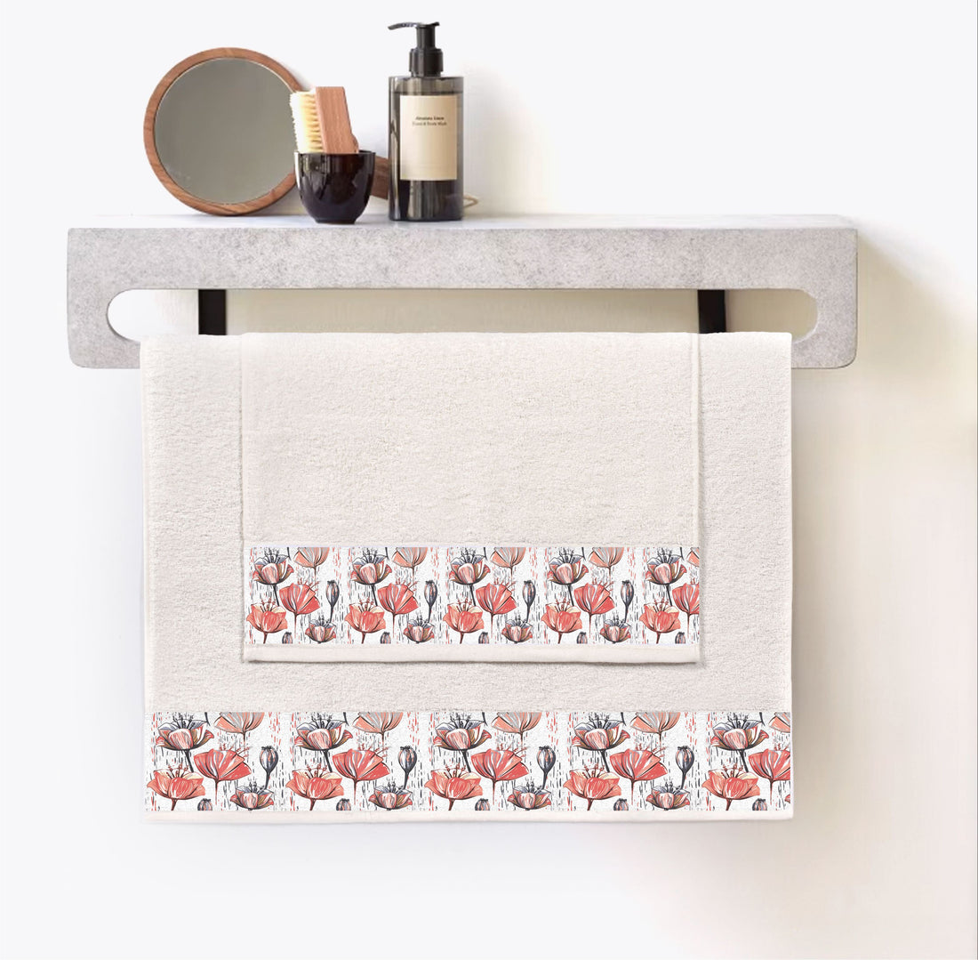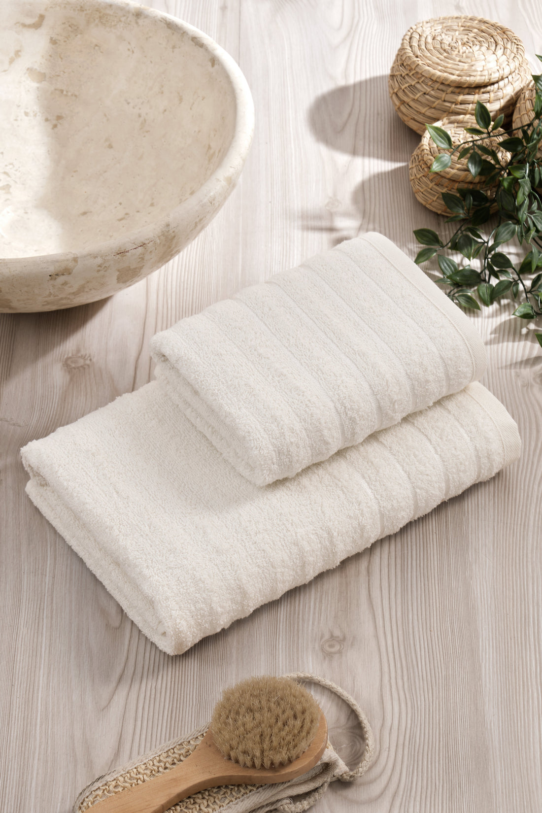 Krem - Dalga - 2'li Banyo Havlu Seti