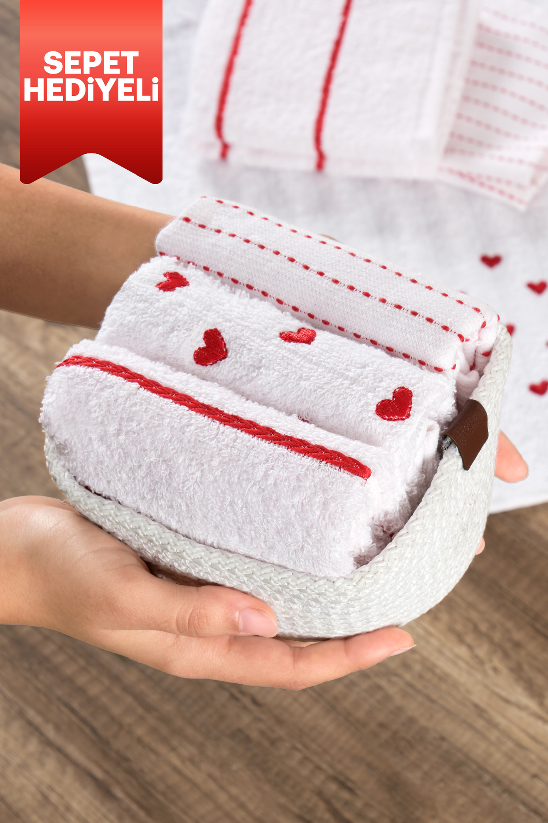 3'lü Sophia Kalpli 30x50 Cm El Ve Yüz Havlu Seti Mutfak Havlusu