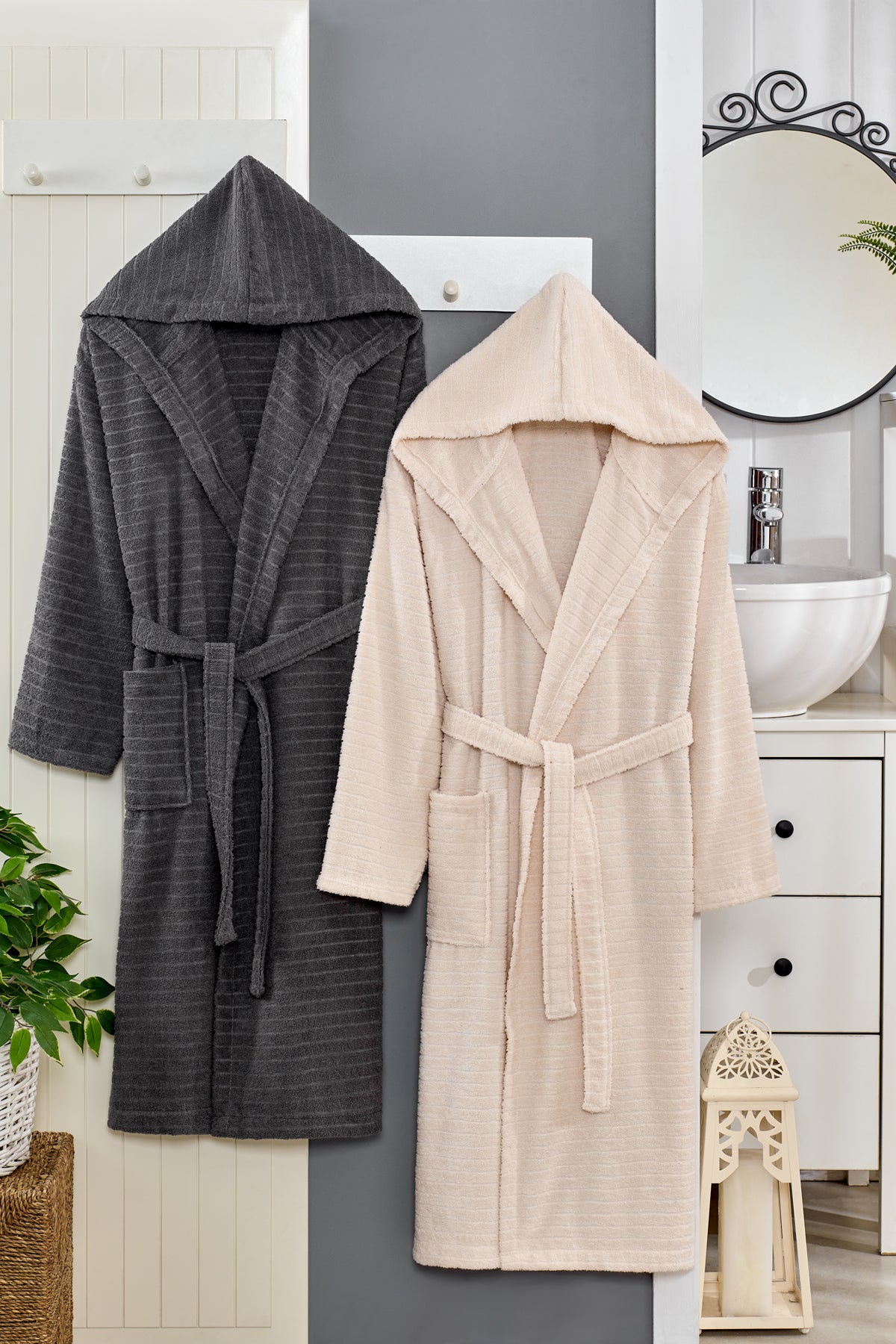 Antrasit-Bej - Doğa 2'li Bornoz Aile Seti