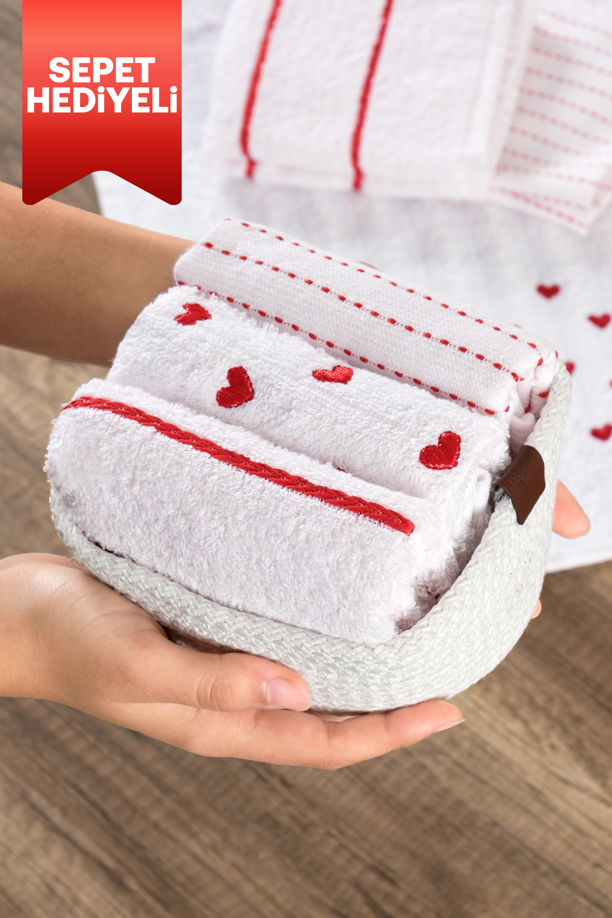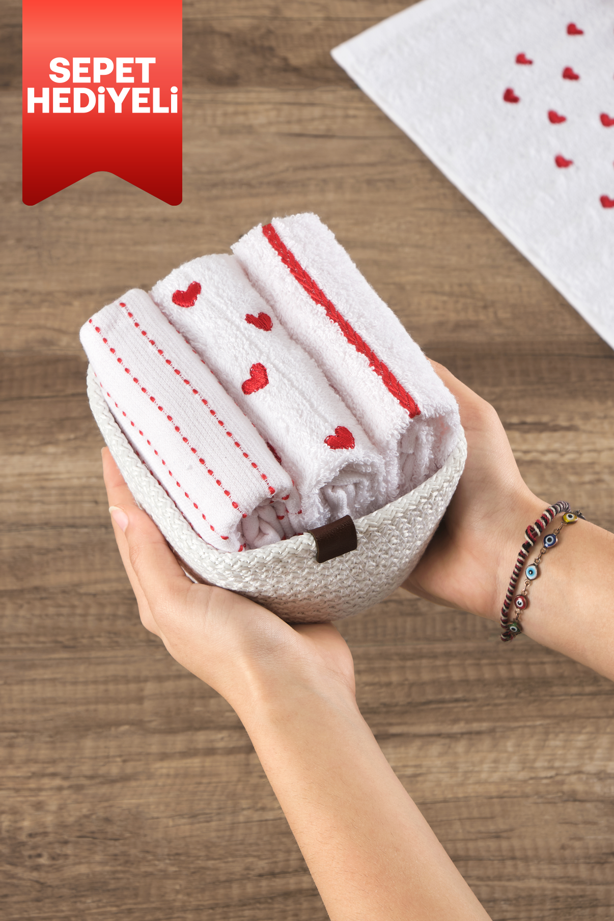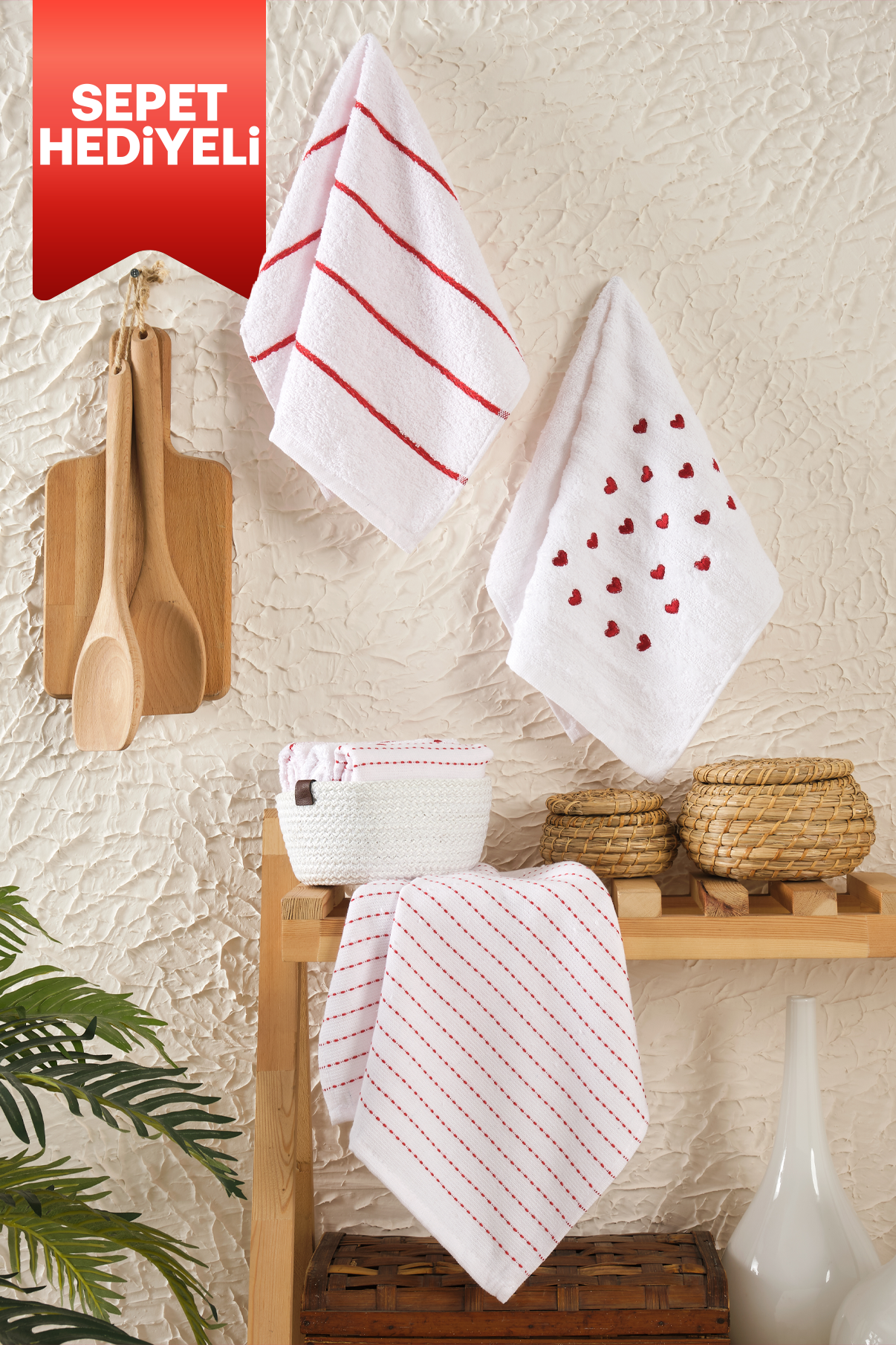 3'lü Sophia Kalpli 30x50 Cm El Ve Yüz Havlu Seti Mutfak Havlusu